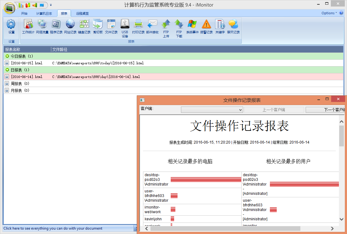 iMonitor EAM會幫您統計並分析員工的工作狀態和效率,使您可以省下管理上的大量人力物力精力。每一位員工的一舉一動您都可以瞭如指掌,從而從根本上杜絕消極怠工,接私活,拉幫結派,人才流失等現象的發生。